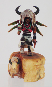 Like most animal Katsinam, the Buffalo (Mosairu) dances to increase his kind. This Katsina is very well-known and is the most powerful. He can kill any evil thoughts and is a great spiritual protector.